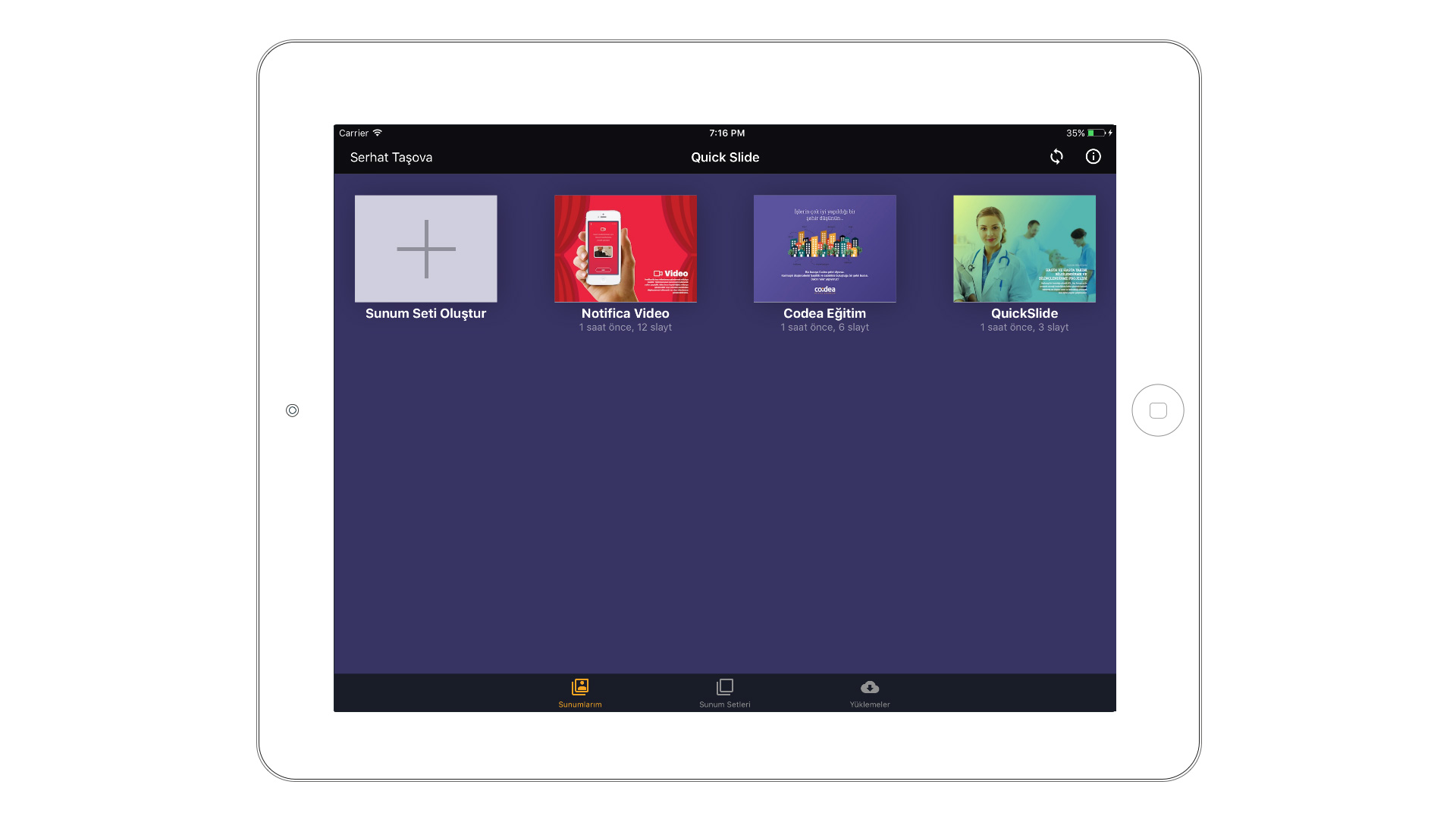 QuickSlide ile kullanıcı verileri cloud sisteminde saklanır, cihaz değişikliğinde veya uygulamanın kaldırılması/yeniden yüklenmesi durumunda kendi sunum setlerini yeniden kullanabilirler.